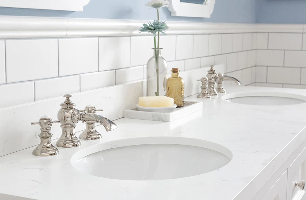 Konstruowany kwarc stał się popularnym wyborem w przypadku głównych toaletek ze względu na jego niezwykłą wytrzymałość i ogromną gamę kolorów. Przy odpowiedniej pielęgnacji i ochronie nasze blaty kwarcowe mogą pozostać przez całe życie, pomimo plam po makijażu.